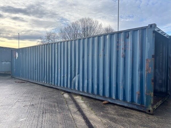 Used 40ft steel storage container (ref 28) Dark Blue.