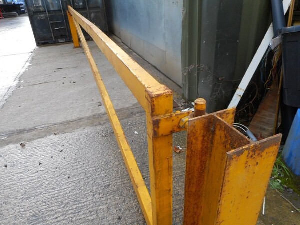 The barrier arm without posts is 6.710mtr long and is made from 120mm x 60mm steel box section painted yellow.