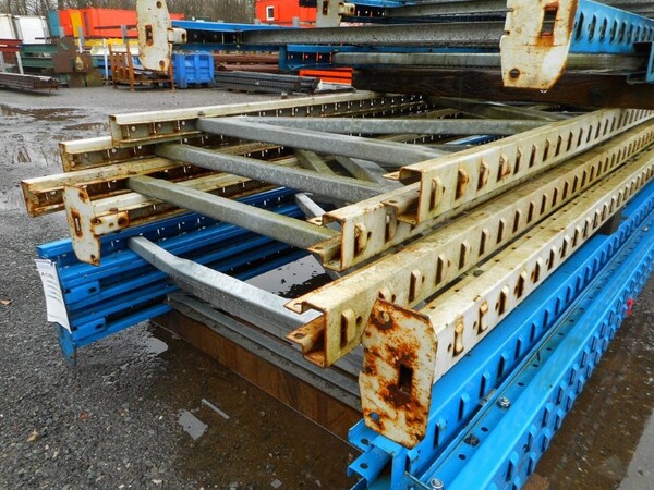 Used Apex Pallet Racking Upright Frames. Used Grade 2. Colour: White with galvanised cross braces. 5.940mtr High approximately. 900mm Wide. c/w feet. Price shown is for 1 no frame only. Please see photos for condition - these frames are stored outside and are rusty.