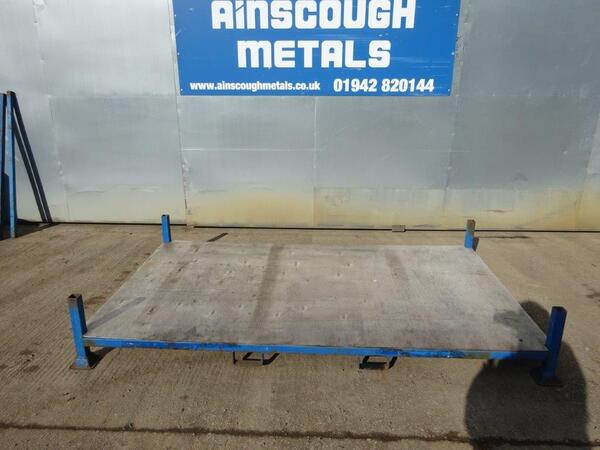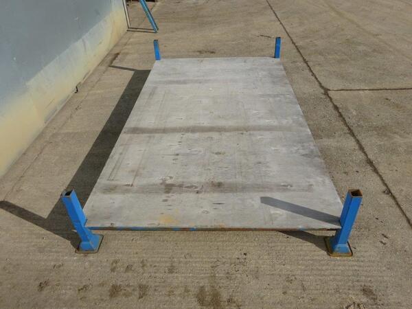 Blue Post Pallet / stillage 2.450 Mtr wide x 1.400 Mtr  deep x  0.400 Mtr high c/w Plywood - Used - stacking pallet - storage pallet - steel pallet