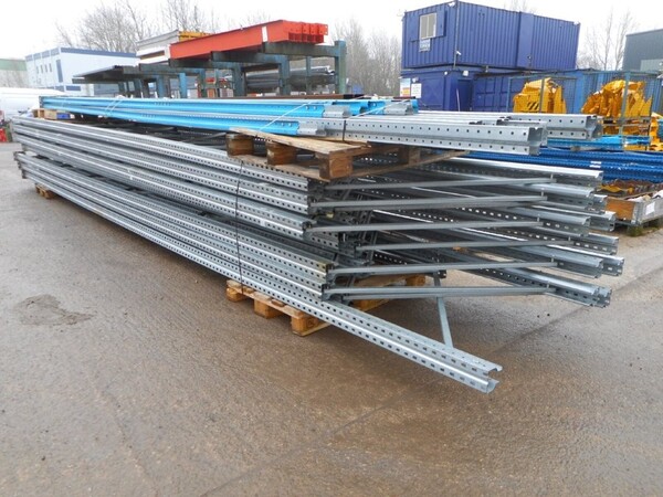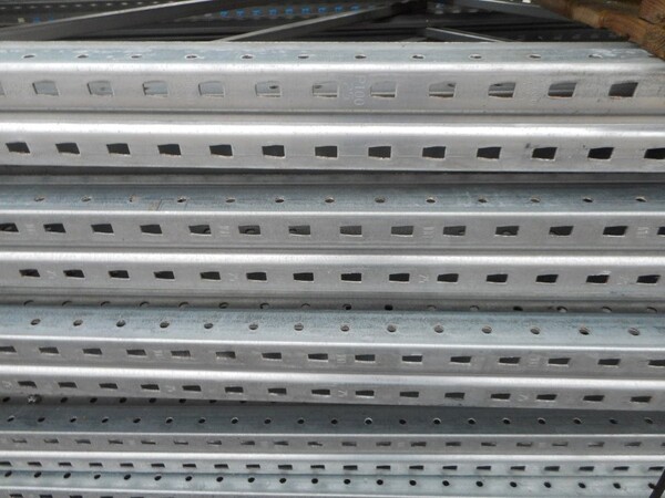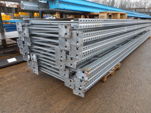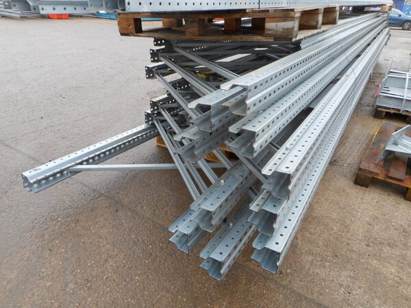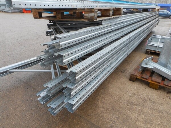 USED GALV STEEL DEXION P90 STORAGE PALLET RACKING UPRIGHT FRAME WITH FEET.