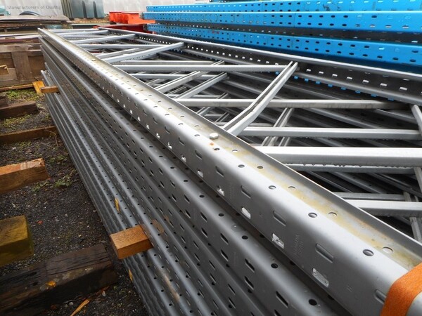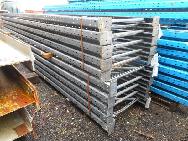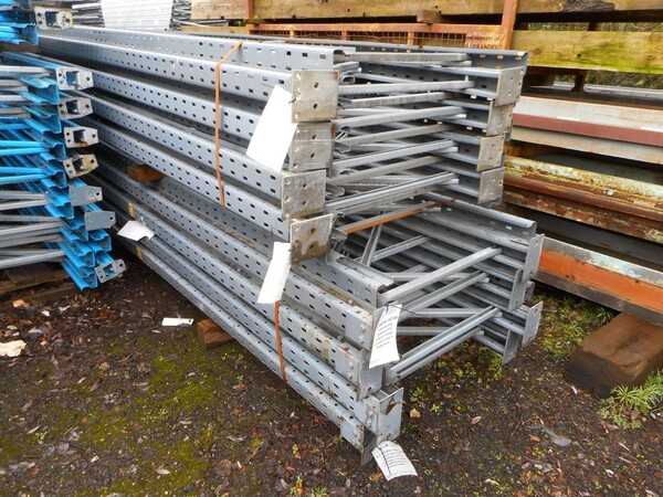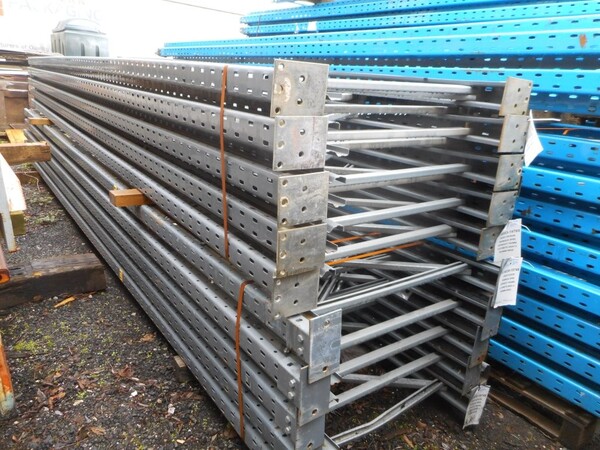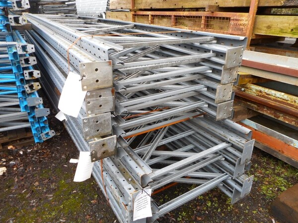 USED GREY STEEL DEXION / RAMADA SP80 STORAGE PALLET RACKING UPRIGHT FRAME C/W FEET.