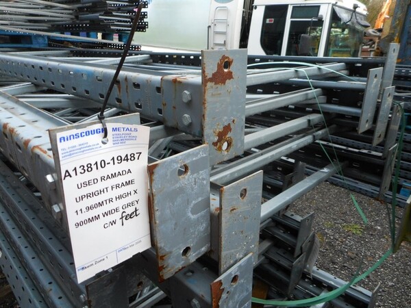 USED GREY STEEL RAMADA SP80 STORAGE PALLET RACKING UPRIGHT FRAME C/W FEET.