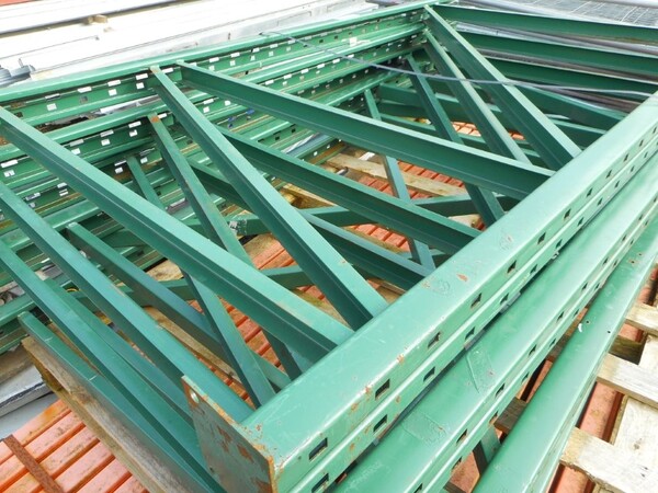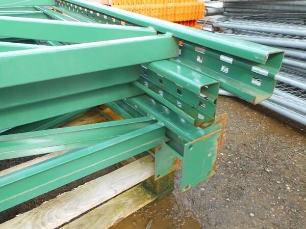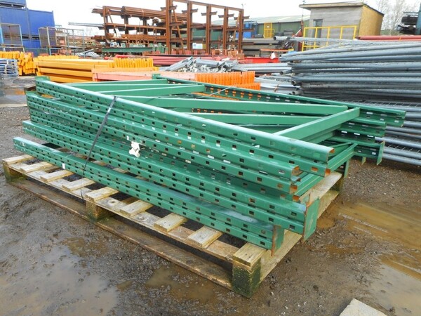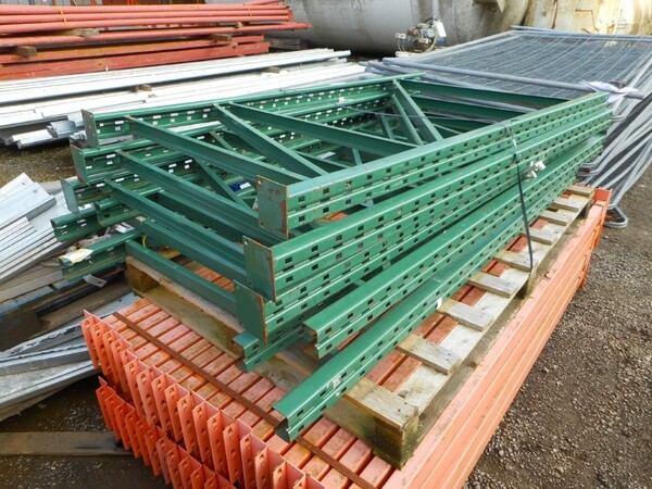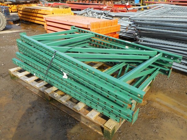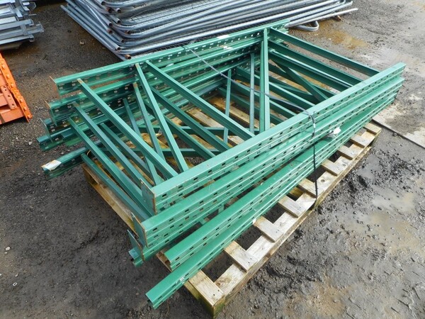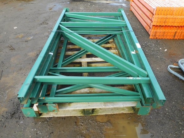 USED GREEN STEEL REDIRACK STORAGE PALLET RACKING UPRIGHT FRAME THESE FRAMES ARE USED GRADE 2 - STORED OUTSIDE AND STARTING TO SHOW SIGNS OF RUST C/W FEET 2.025 MTR HIGH APX 1100MM WIDE APX PLEASE NOTE THESE ARE SOLD PER SINGLE FRAME / PRICE IS FOR 1 NO FRAME 2.025MTR X 1100MM - PHOTOS MAY SHOW STOCK PILES CROSS BARS TO SUIT AVAILABLE SEE OTHER LISTINGS CROSS BARS ONLY SOLD WHEN BUYING UPRIGHTS