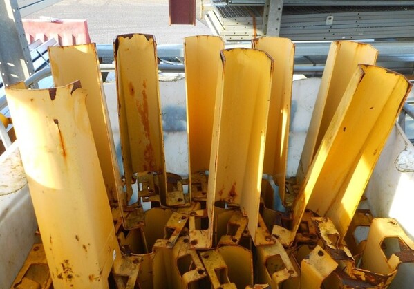 VERY USED PALLET RACKING LEG / UPRIGHT PROTECTORS / COLUMN GUARDS FOR PALLET RACKING UPRIGHT FRAMES.