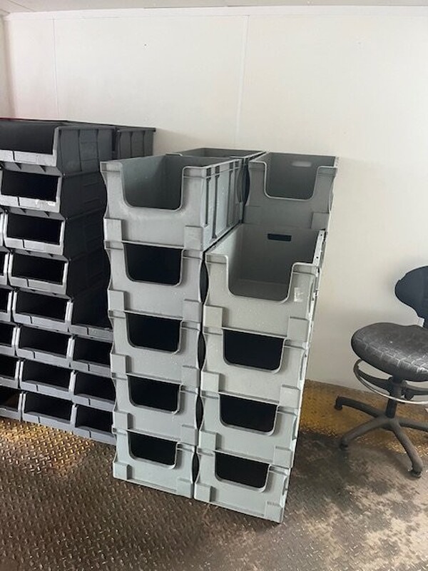 Used plastic open topped stackable box.