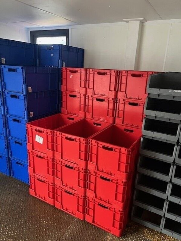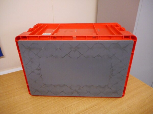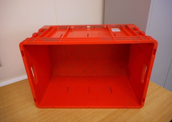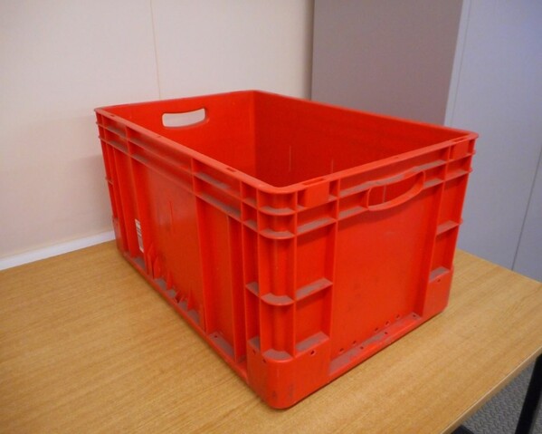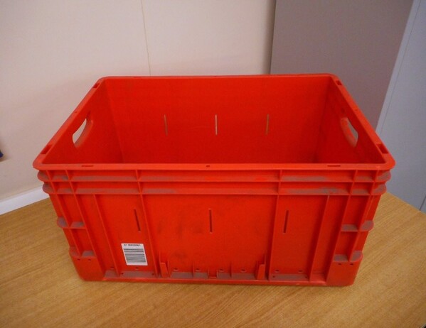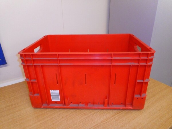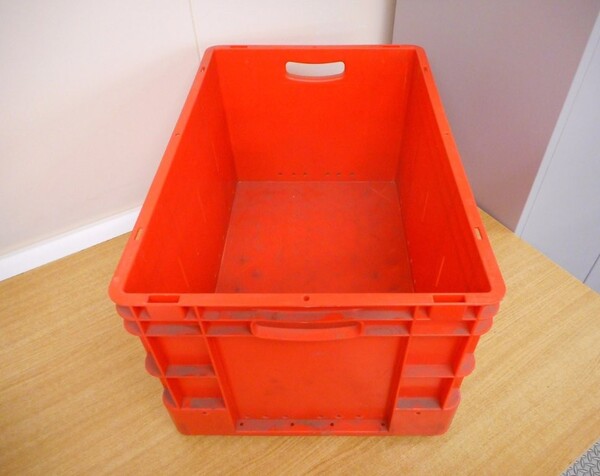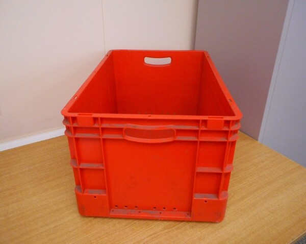 Used plastic open topped stackable box.