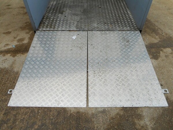 Each separate ramp is 835mm wide made from aluminium chequer plate. Base of stillage also consists of aluminium chequer plate.