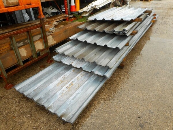 Box profile roofing sheets in a used condition. Please see photographs for condition as these sheets are beginning to show signs of rust and may have damage, holes or dents.