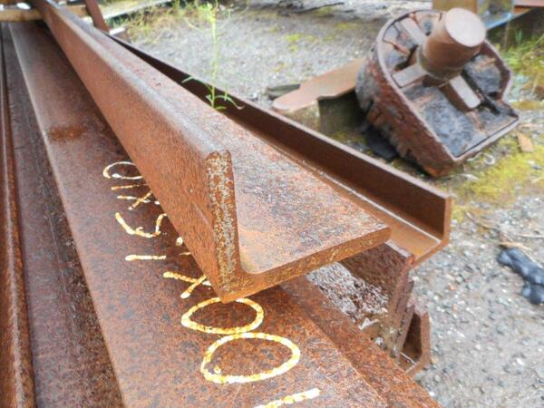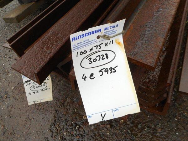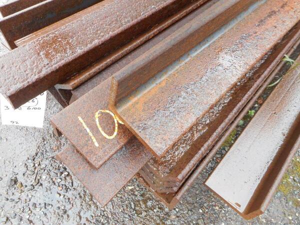 Unused unequal stock rusty angle iron 5.935mtr approximately 100mmx75mmx11mm angle iron Please see photographs for condition - they are stock rusty, stored outside.
