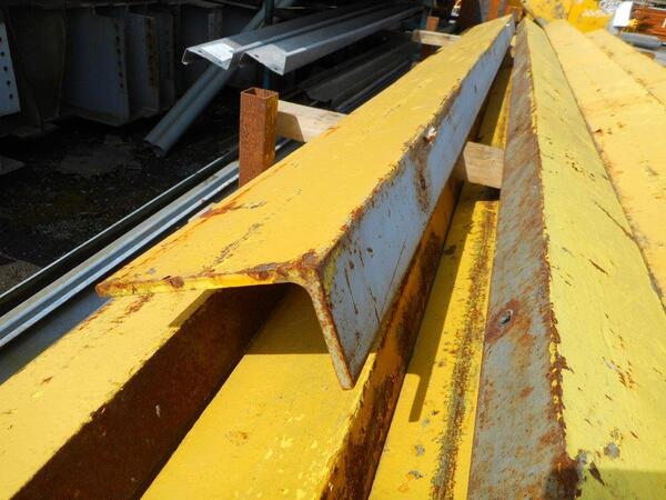Used Stock Rusty Unequal Angle Iron - 3.000mtr 200x100x10 angle iron This item is used and has holes in the 100mm edge and has previously been painted yellow.