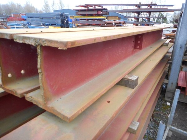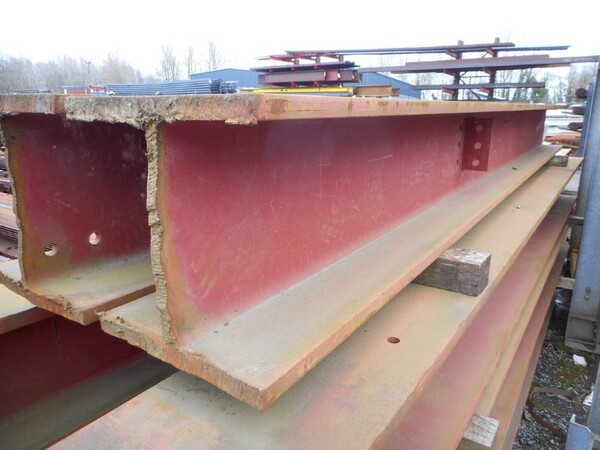 Painted red, with attachment and holes in web and flange.