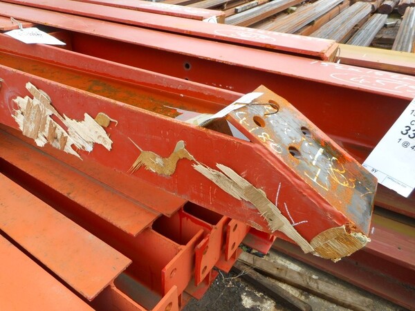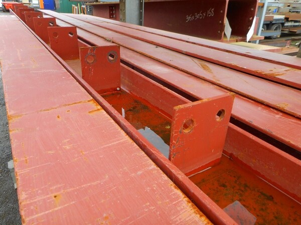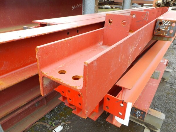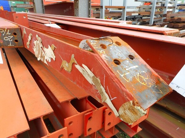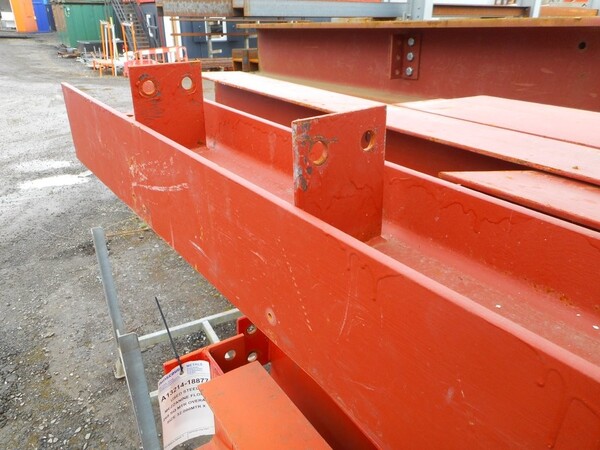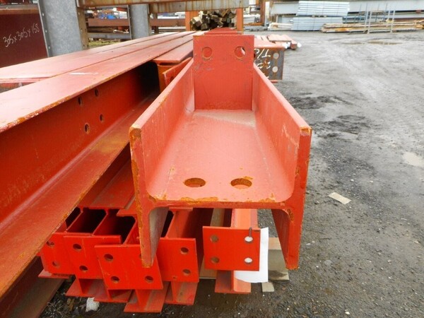 Second hand and has an angle cut at the one end with end plate. Column has been measured to usable length. Attachments on one side as per photographs. This column also has holes. Please see pictures for condition.