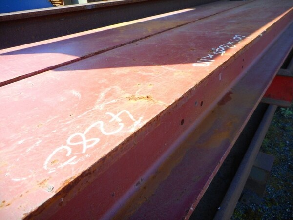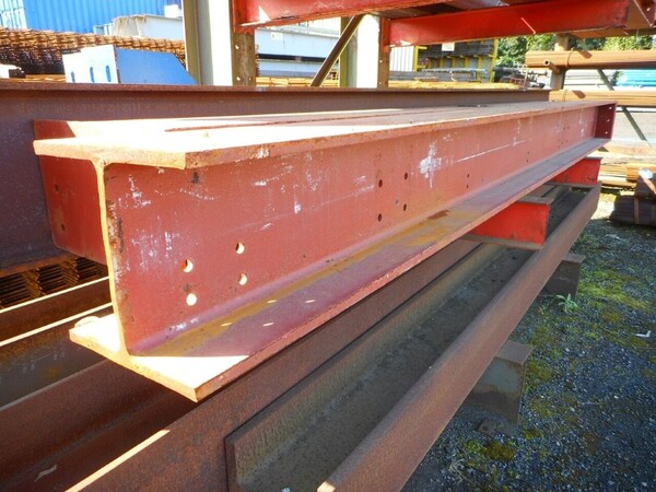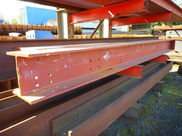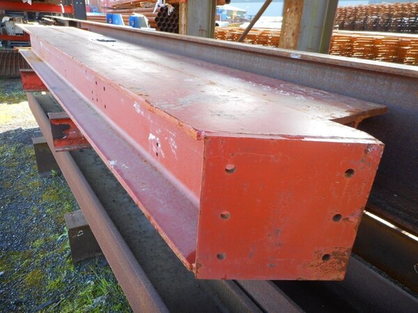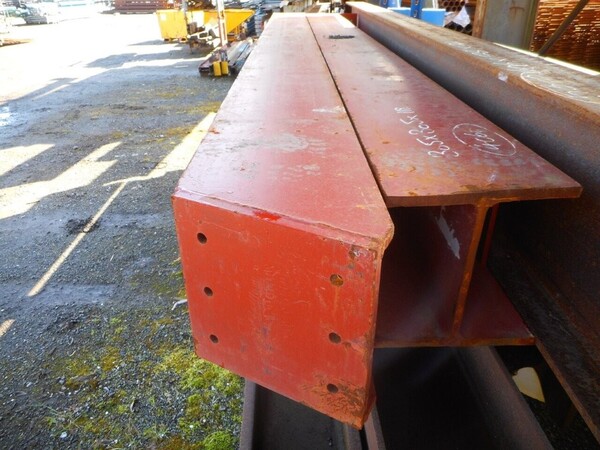 Painted red, with end plate and holes in the web.