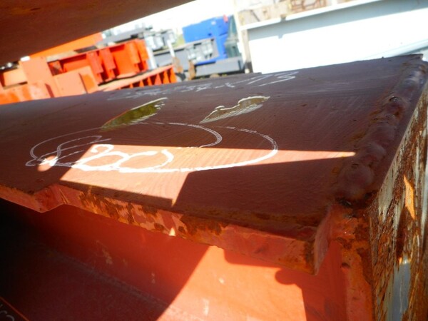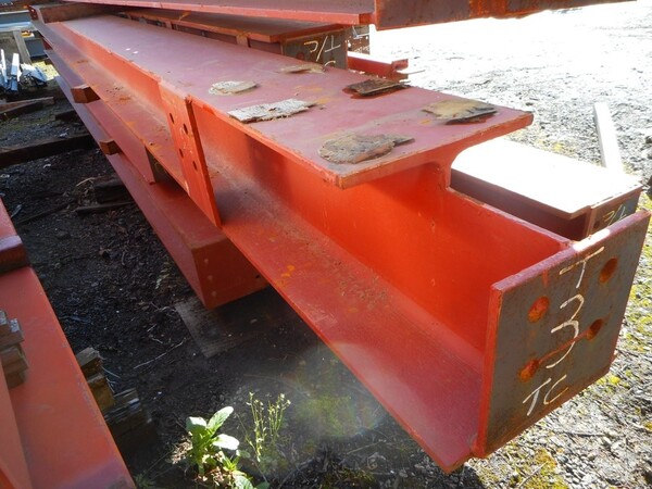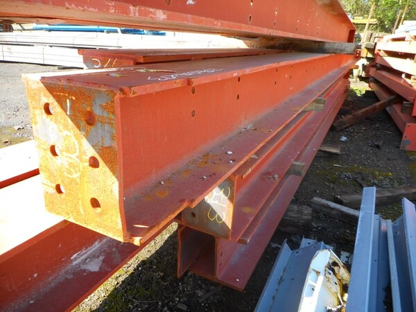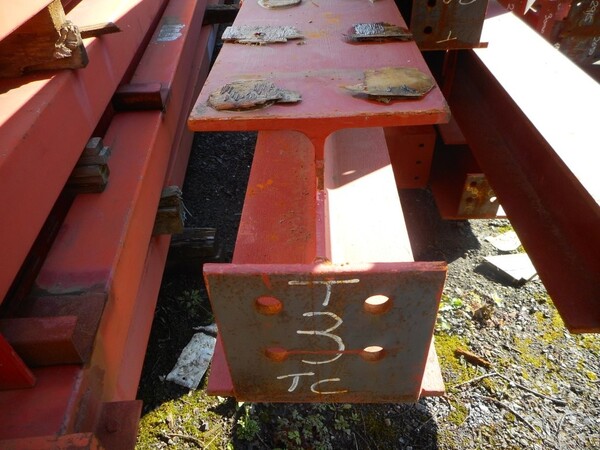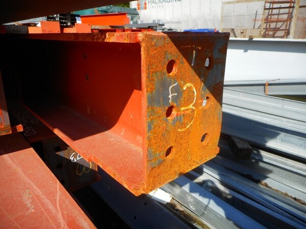 Painted red, with end plates, holes in the web and attachment.