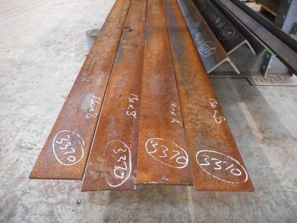 130mm x 8mm Mild Steel Flat Bar - 3.370 Mtrs - Unused Stock Rusty - Flat Steel