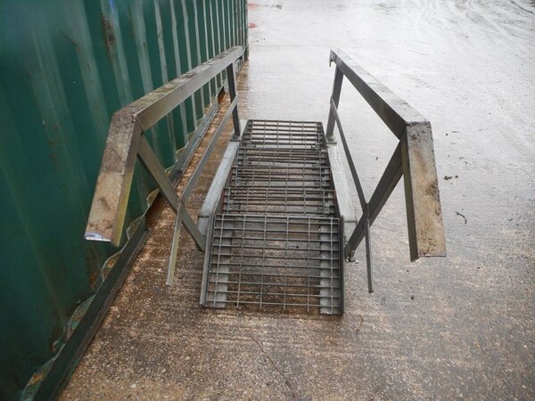 Used Galvanised Steel Container Staircase / Steps with open treads and handrail both sides.