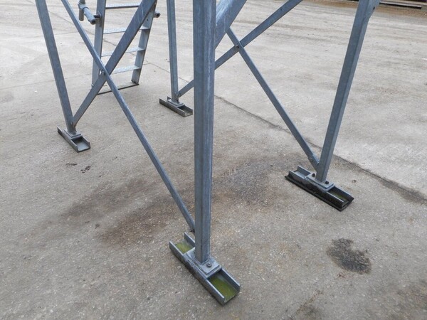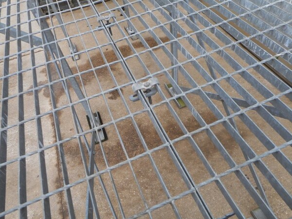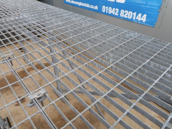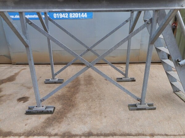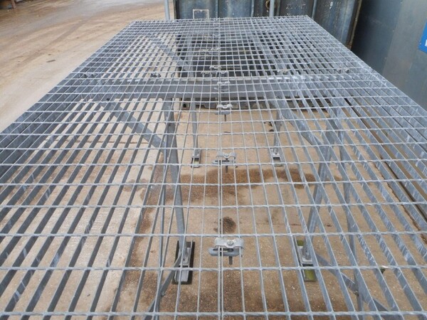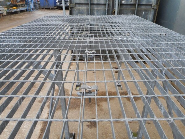 Top platform framework is covered with 2 no sheets of galvanised floor forge open steel flooring, 25mm x 2mm flat bar with 100mm x 40mm aperture.